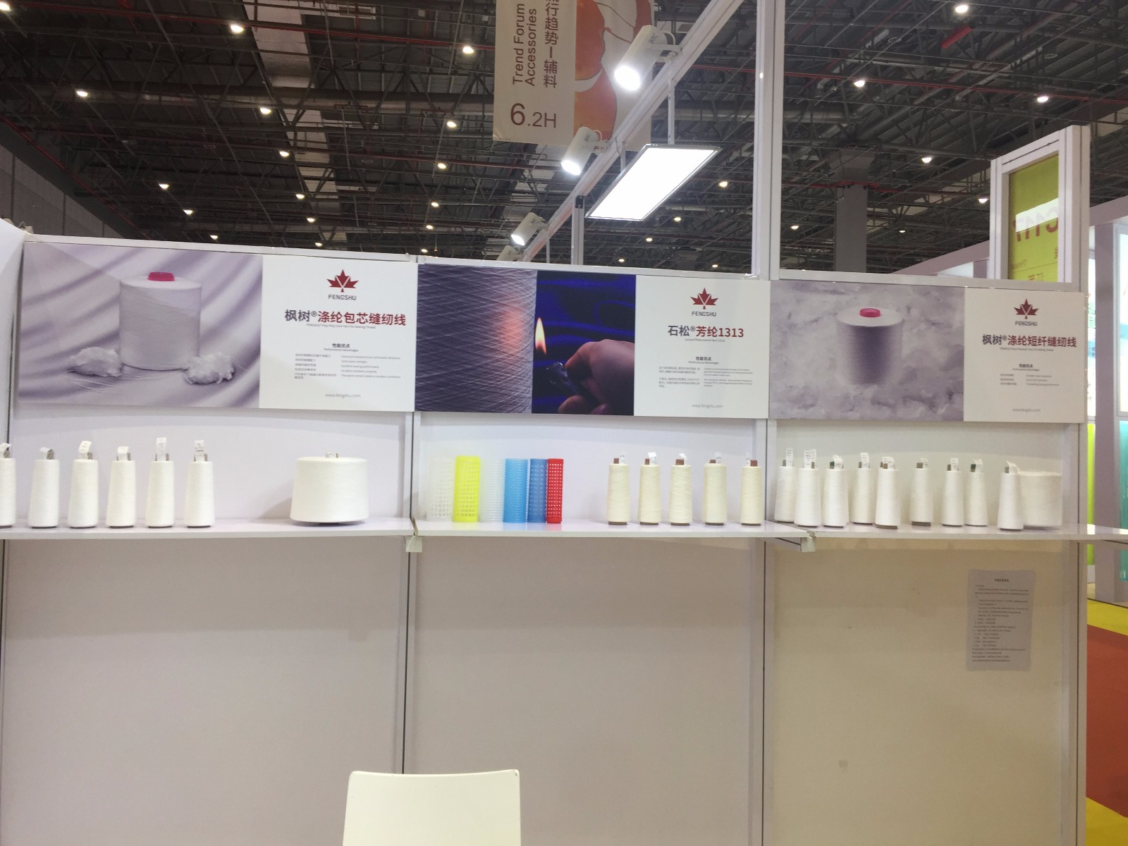 枫树线业首次亮相该展会,便以优质的产品,专业的形象,大气的展台吸引了众多国内外客商驻足。本次展会上,枫树线业展出了枫树®涤纶短纤缝纫线,枫树®涤纶包芯缝纫线以及石松®芳纶1313特种纱线等产品。展会上,每个展品都以良好的状态展示自己作为“爆品”的形象。作为新品的石松®芳纶1313特种纱线也毫不逊色,其固有的阻燃性、自熄、良好的耐化学性、优良的强度、耐用性和卓越的缝纫性能,受到众多特种产业客商青睐。